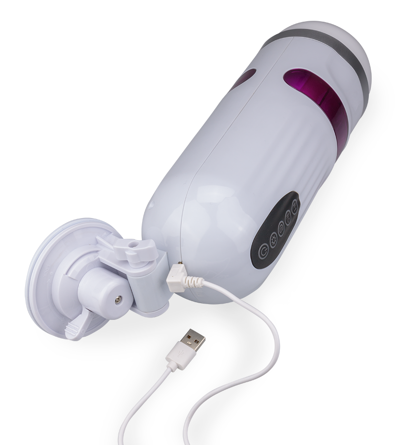 Wenn Sie bei diesem automatischen Masturbator alle Möglichkeiten nutzen wollen, die er Ihnen bieten, dann müssen Sie Zeit und Ausdauer mitbringen! Die Stoßfunktion kann in 10 unterschiedlichen Modi und 10 Intensitäten genutzt werden. Dazu können Sie die Heizfunktion und eine Audiofunktion mit 4 Programmen kombinieren. Zusätzlich können Sie die Airbag-Funktion einschalten. Auf Knopfdruck entsteht ein stimulierender Unterdruck. Wenn Sie dabei gerne die Hände frei haben, befestigen Sie den Saugfuß einfach an einer glatten Fläche.