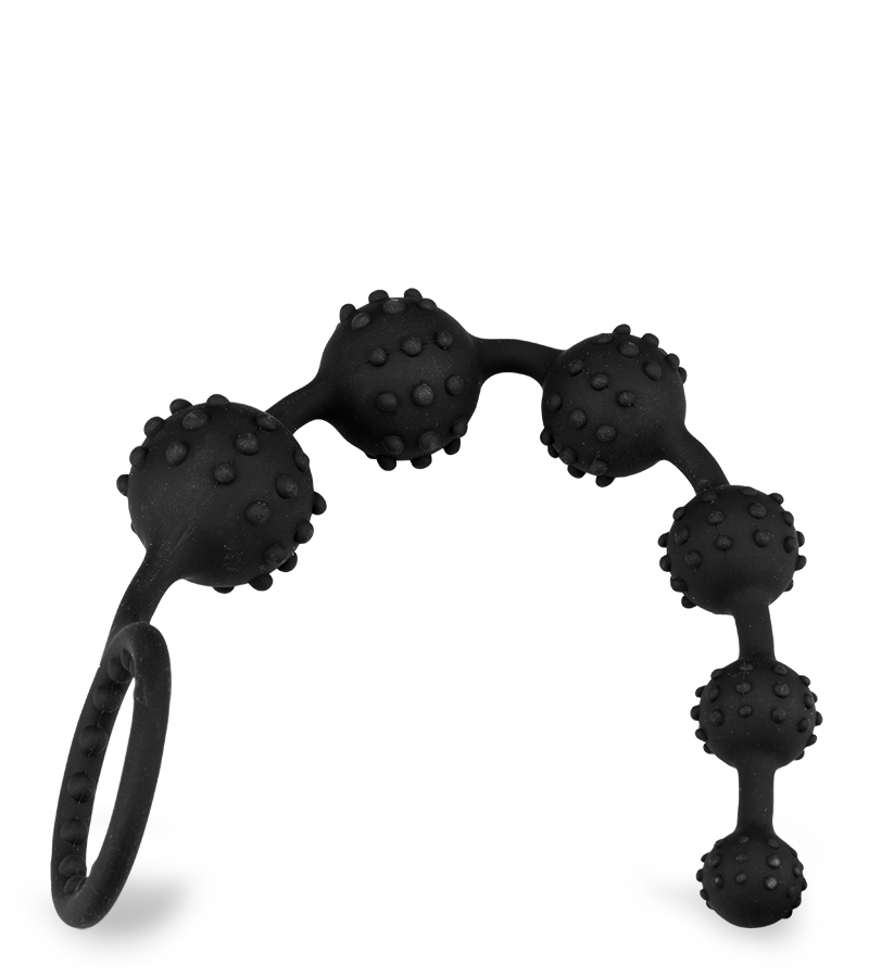 Das Analtoy besteht aus einer Analkette mit sechs Kugeln und einem Penisring. Die sechs Kugeln haben unterschiedliche Durchmesser zwischen 1,3 cm für die kleinste und 2,6 cm für die größte Kugel. Alle Kugeln sind mit einer Noppenstruktur versehen und massieren Ihr Hintertürchen dadurch noch intensiver. Der Penisring, der innen ebenfalls mit einer Noppenstruktur versehen ist, wird über den Penis gezogen, während Sie die Analmassage der Analkette genießen und sorgt für noch kräftigere Erektionen.