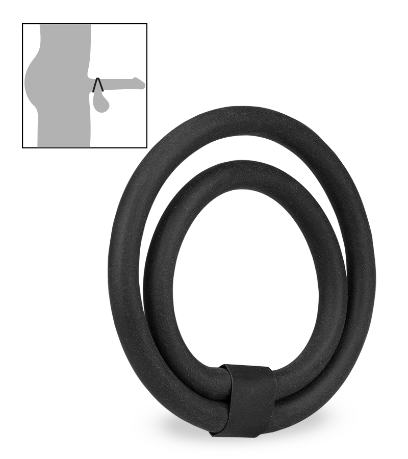 Der schlichte Doppel-Cockring aus Silikon besteht aus zwei Ringen, die aneinander befestigt sind. Während der eine Ring um den Penis gelegt wird, wird der andere Ring über die Hoden gezogen. Die Durchmesser sind nicht identisch. Der kleinere Ring für den Penis hat einen Außendurchmesser von 5,5 cm und einen Innendurchmesser von 4 cm. Der größere Ring für die Hoden hat einen Außendurchmesser von 7 cm und einen Innendurchmesser von 5,5 cm. Der sanfte Druck, den die Ringe auf die Blutgefäße in Penis und Hoden ausüben, sorgt dafür,. dass der Penis stärker anschwillt als sonst und Sie die Erektion länger halten können.