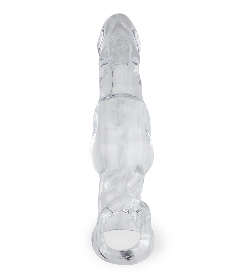 Gönnen Sie Partnerin oder Partner ein intensiveres Empfinden beim Sex mit der durchsichtigen Penishülle mit Hodenring Gordon!