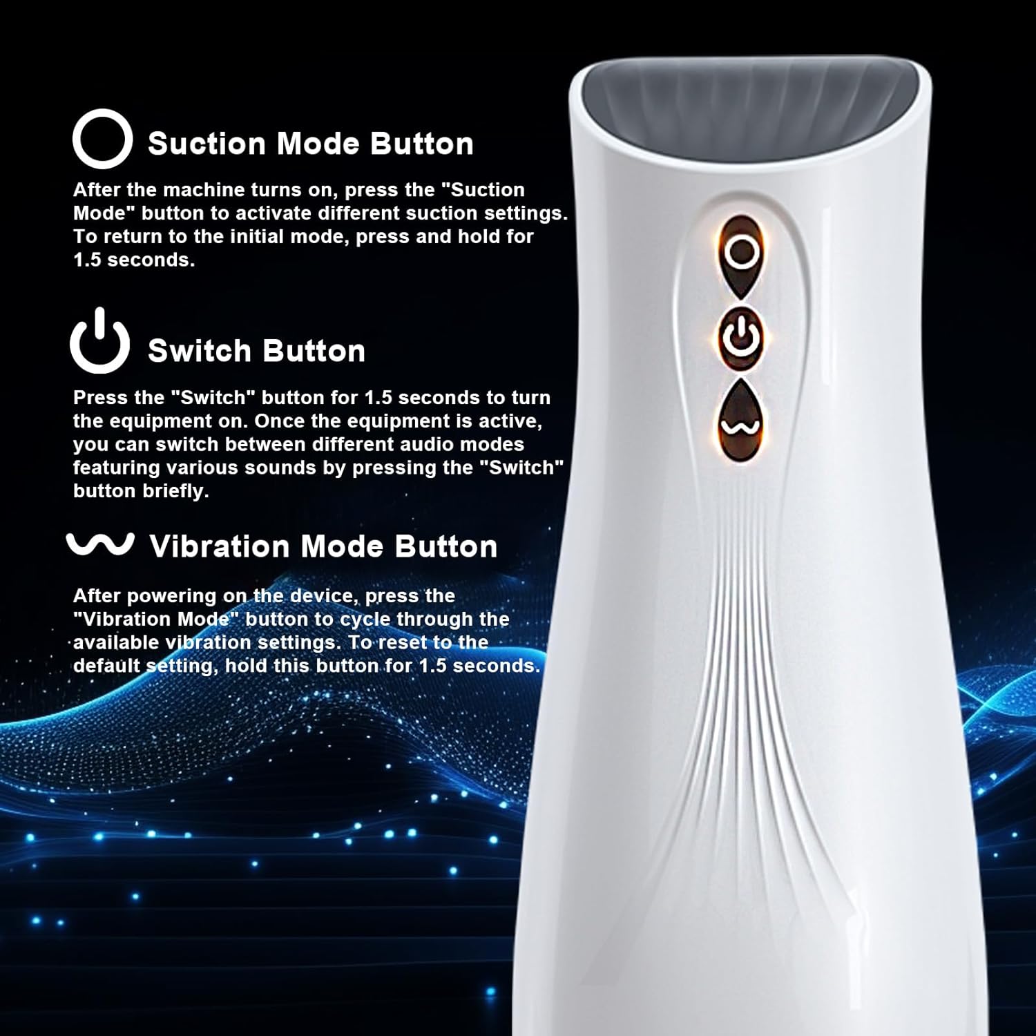 • Entdecken Sie das ultimative Vergnügen mit unserem automatischen Masturbationsbecher für Männer, der dank seiner ausgeklügelten Saugtechnologie ein zutiefst befriedigendes Erlebnis bietet. Jeder der 10 einzigartigen Saugmodi wurde entwickelt, um reale Empfindungen zu imitieren und ein vielseitiges und aufregendes Erlebnis zu bieten: