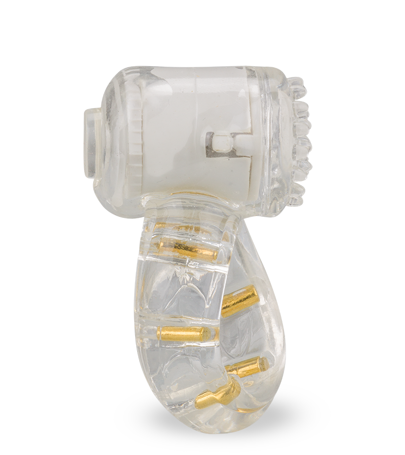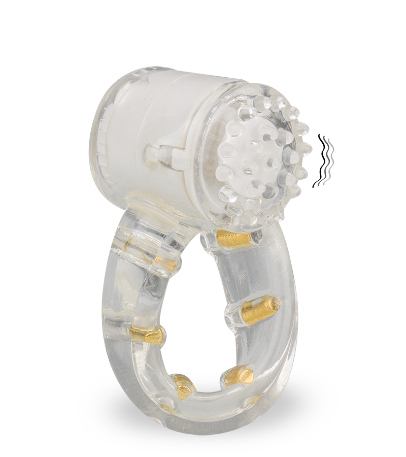 Peppen Sie Ihr gemeinsames Liebesspiel auf und holen Sie sich den genoppten durchsichtigen Vibro-Penisring auf Ihre Spielwiese.
