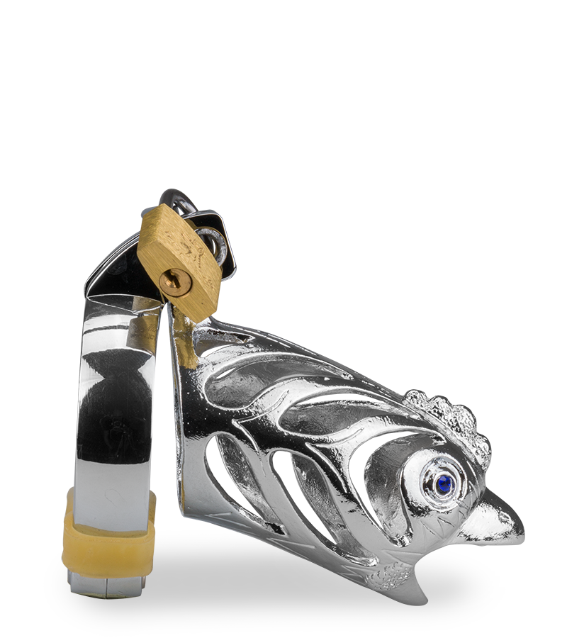 Der Peniskäfig aus robustem Edelstahl macht eine Erektion unmöglich. Durch die kleinen Öffnungen an der Seite und vorne kann der Penis aber dennoch sanft stimuliert werden. Auch Urinieren ist möglich. Somit kann der Keuschheitsgürtel auch über einen längeren Zeitraum getragen werden. So lange, bis das kleine Schloss wieder aufgeschlossen und Ihr Penis aus seinem Gefängnis befreit wird. Der Peniskäfig hat ein originelles Design im Stil des chinesischen Tierkreiszeichens Hahn