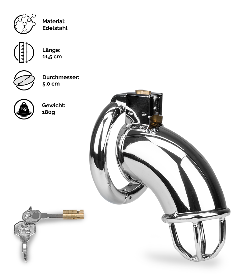 Der Keuschheitskäfig hat eine Gesamtlänge von 11,5 cm und ist in verschiedenen Durchmessern erhältlich: