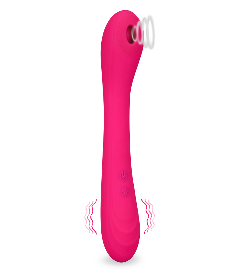 Als echtes All-in-One-Sexspielzeug stimuliert der Vibrator mit seinem Schaft den G-Punkt. Gleichzeitig kümmert er sich hingebungsvoll und ohne Berührung um die Klitoris. Das Sextoy ist nämlich beweglich und an der Spitze befindet sich eine kleine Öffnung, die an der Klitoris positioniert wird. Mit diesem Vibrator müssen Sie sich nicht zwischen Vibrationen und sanften Druckwellen entscheiden, denn er kann beides. Die 9 Vibrationsmodi und 9 Druckwellenmodi können unabhängig voneinander gesteuert werden.