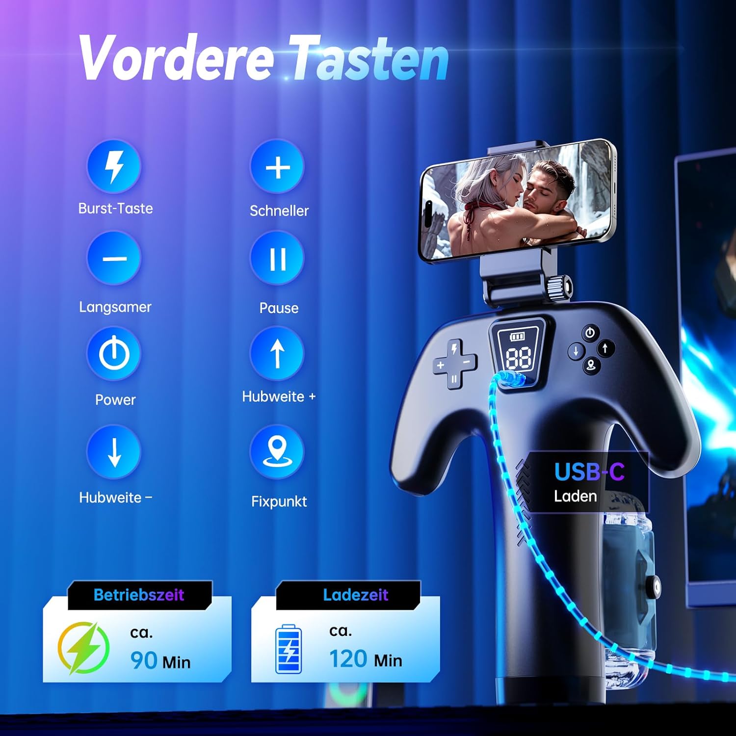 • Doppelseitige Steuerung & abnehmbarer Handyhalter: Vorder- und Rücktasten ermöglichen einfache, flexible Bedienung; der abnehmbare Halter fixiert Ihr Smartphone für freihändige Unterhaltung. Dieses sex toyset für man kombiniert Komfort und Technik. Der masturbator mann ist für Solo- und Partnergebrauch ideal, beliebt als sex toy men und vielseitiges sexspielzeug männer Modell, das auch in sextoysets für men hervorragend ergänzt.