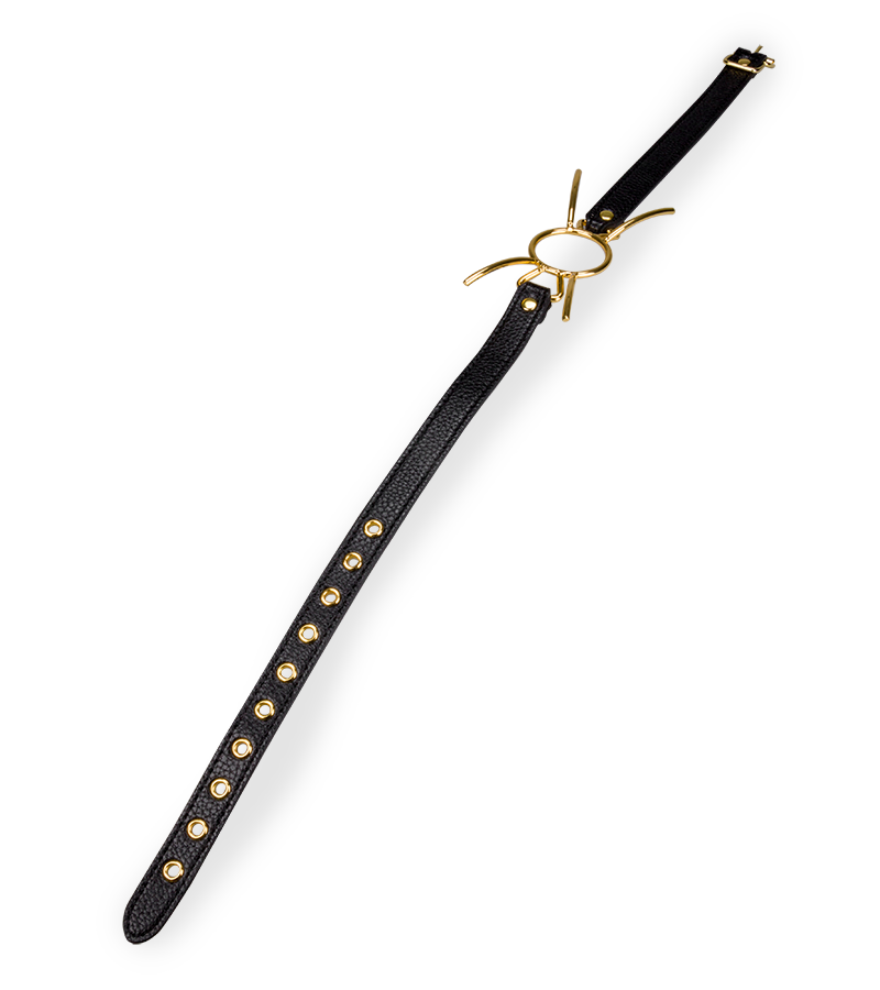 Der Mundspreizer besteht aus Metall und Kunstleder. Er sorgt dafür, dass die geknebelte Person, den Mund offen halten muss und hat außen vier dekorative Zacken. Für eine optimale Passform ist der Kopfgurt auf 10 Weiten verstellbar.