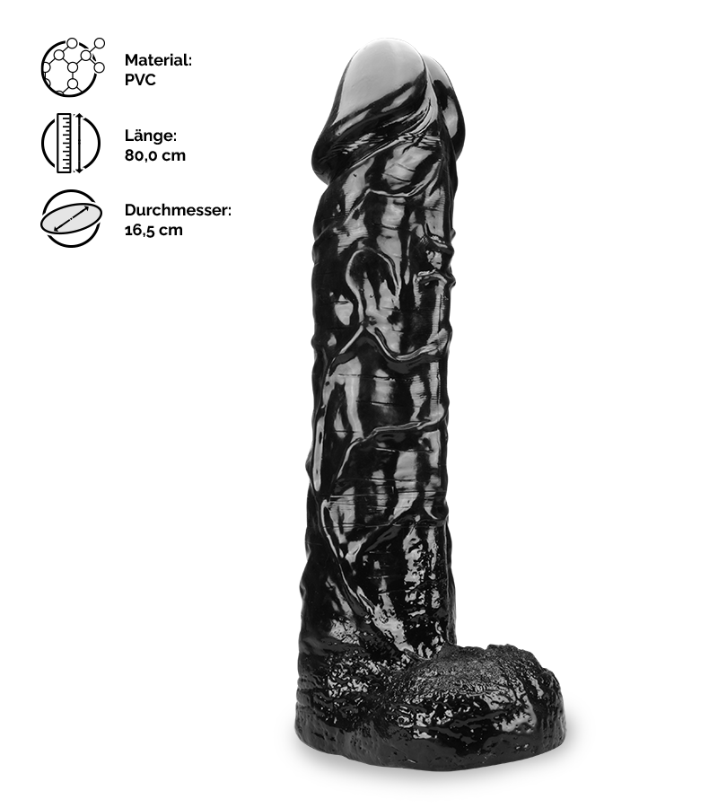 Mit einer Gesamtlänge von 80 cm und einem Durchmesser von 16,5 cm wird dieser Riesendildo niemanden gleichgültig lassen.