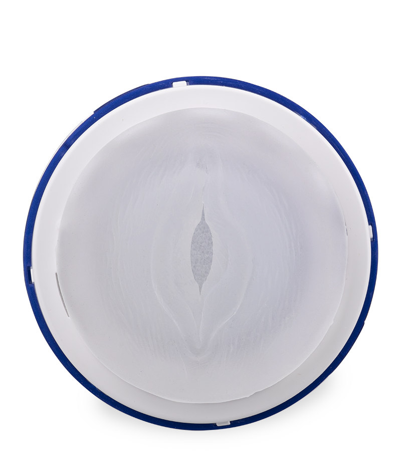 1. Lösen Sie den oberen weißen Teil des Masturbators sowie den Teil mit dem Vagina-Einsatz und nehmen Sie den durchsichtigen blauen Teil an der Vorderseite ab.
