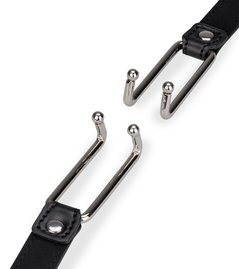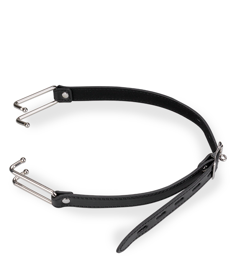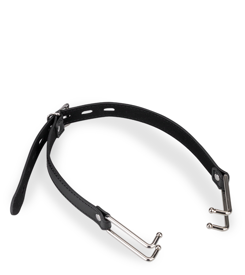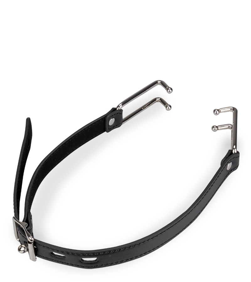Dieses BDSM-Accessoire besteht aus einem schmalen Kunstleder-Gurt, der um den Kopf gelegt wird. Die beiden Haken aus Metall werden in die Mundwinkel eingehängt und zwingen so dazu, den Mund komplett geöffnet zu halten. Der Gurt des Mundspreizers lässt sich für eine optimale Passform und eine variable Intensität auf 8 Weiten einstellen.